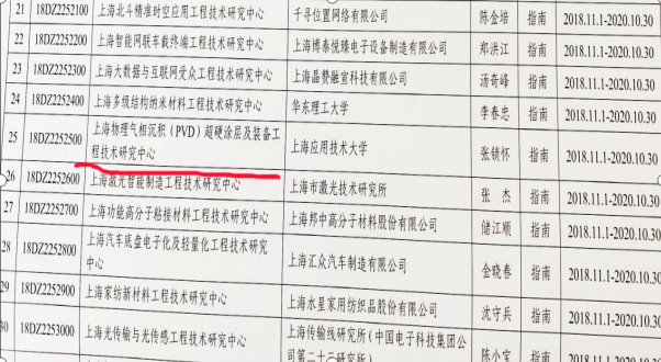 上海物理气相沉积( PVD ) 超硬涂层及装备 工程技术研究中心申报成功