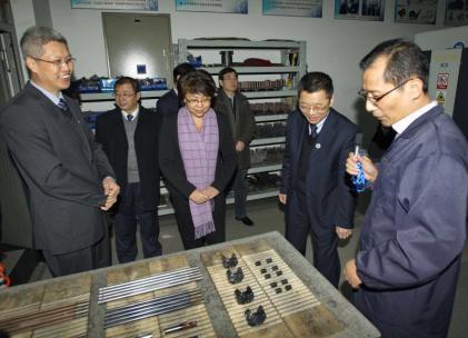 图2:上海市原副市长翁铁慧及上海市原教委主任陆靖参观工程中心